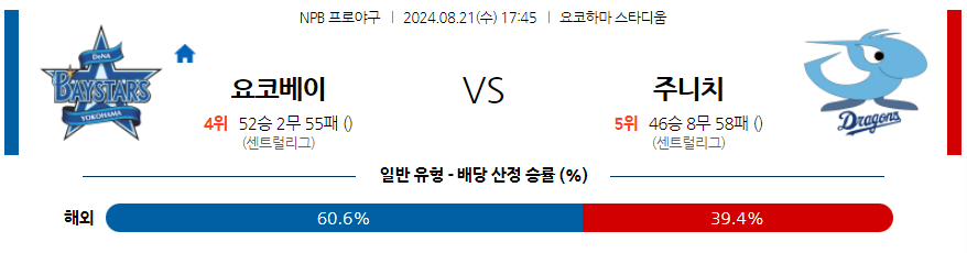 [킹콩티비] 08월 21일 요코하마 vs 주니치 NPB 생중계, 스포츠분석,스포츠중계