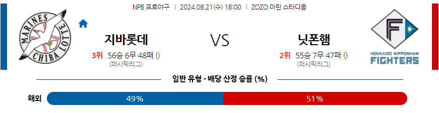 [킹콩티비] 08월 21일 지바롯데 vs 니혼햄 NPB 생중계, 스포츠분석,스포츠중계