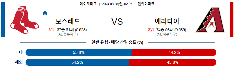 [킹콩티비] 08월 26일 보스턴 vs 애리조나 MLB 생중계, 스포츠분석,스포츠중계