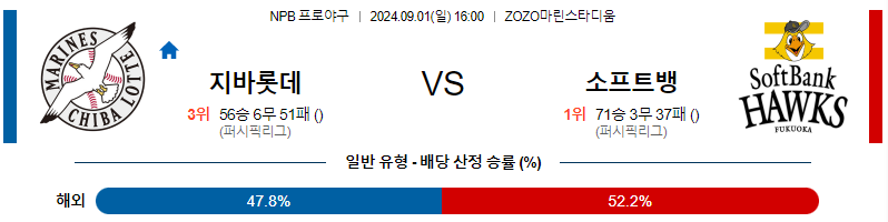 [킹콩티비] 09월 01일 치바롯데 vs 소프트뱅크 NPB 생중계, 스포츠분석,스포츠중계