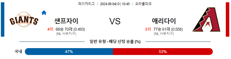 [킹콩티비] 09월 04일 샌프란시스코 vs 애리조나 MLB 생중계, 스포츠분석,스포츠중계