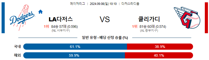 [킹콩티비] 09월 08일 LA다저스 vs 클리블랜드 MLB 생중계, 스포츠분석,스포츠중계