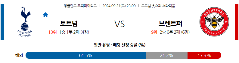 토트넘 홋스퍼 브렌트퍼드 FC 09월21일