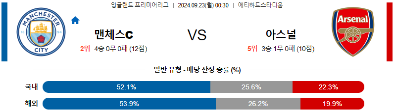 [킹콩티비] 09월 23일 맨체스터시티 vs 아스날 EPL 생중계, 스포츠분석,스포츠중계