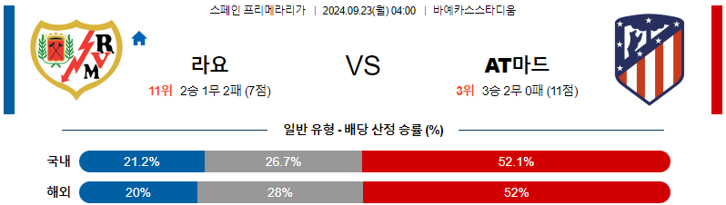 [킹콩티비] 09월 23일 라요바예카노 vs AT마드리드 라리가 생중계, 스포츠분석,스포츠중계