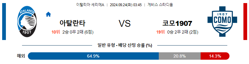 [킹콩티비] 09월 24일 아탈란타 vs 코모 세리에A 생중계, 스포츠분석,스포츠중계