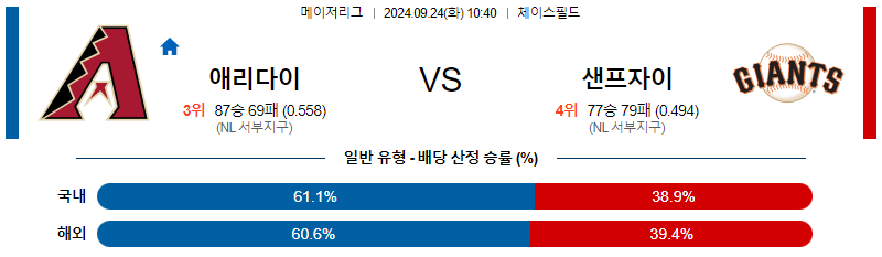 [킹콩티비] 09월 24일 애리조나 vs 샌프란시스코 MLB 생중계, 스포츠분석,스포츠중계