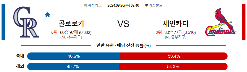 [킹콩티비] 09월 26일 콜로라도 vs 세인트루이스 MLB 생중계, 스포츠분석,스포츠중계
