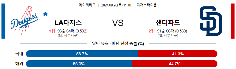 [킹콩티비] 09월 26일 LA다저스 vs 샌디에이고 MLB 생중계, 스포츠분석,스포츠중계