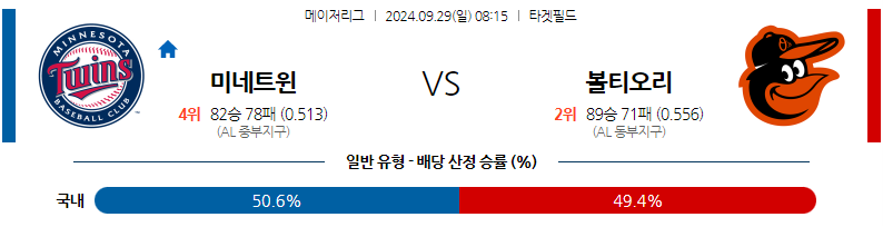 [킹콩티비] 09월 29일 미네소타 vs 볼티모어 MLB 생중계, 스포츠분석,스포츠중계
