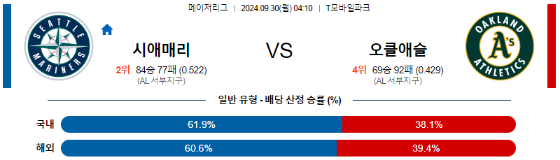시애틀 오클랜드 09월30일