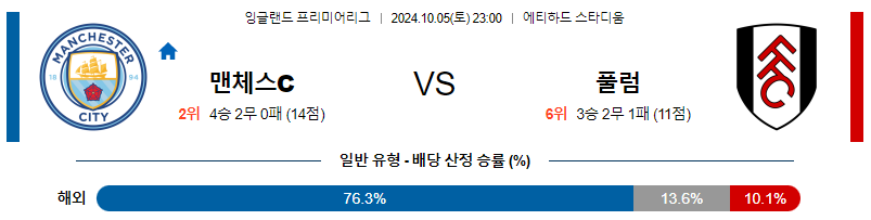[킹콩티비] 10월 05일 맨체스터 시티 vs 풀럼 EPL 생중계, 스포츠분석,스포츠중계