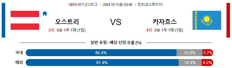 [킹콩티비] 10월 11일 오스트리아 vs 카자흐스탄 UEFA 네이션스리그 생중계, 스포츠분석,스포츠중계