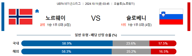 [킹콩티비] 10월 11일 노르웨이 vs 슬로베니아 UEFA 네이션스리그 생중계, 스포츠분석,스포츠중계