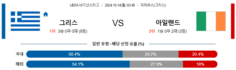 [킹콩티비] 10월 14일 그리스 vs 아일랜드 UEFA 네이션스리그 생중계, 스포츠분석,스포츠중계