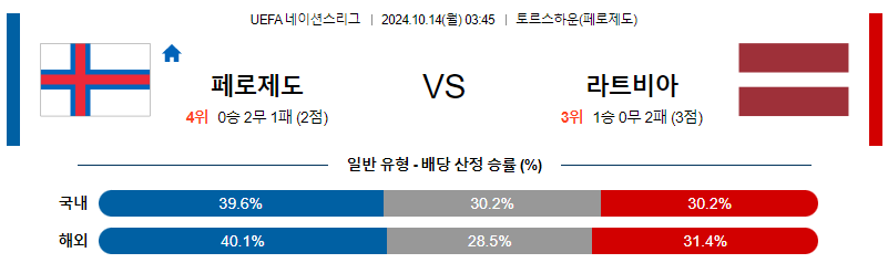 [킹콩티비] 10월 14일 페로제도 vs 라트비아 UEFA 네이션스리그 생중계, 스포츠분석,스포츠중계
