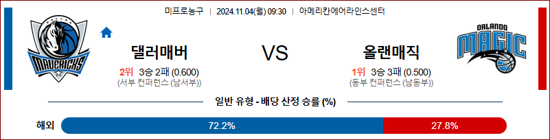 [킹콩티비]11월 04일 댈러스 vs 올랜도 NBA 해외축구분석 무료중계 스포츠분석