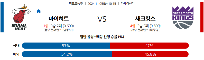 [킹콩티비]11월 05일 마이애미 vs 새크라멘토 NBA 해외축구분석 무료중계 스포츠분석