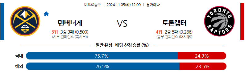 [킹콩티비]11월 05일 덴버 vs 토론토 NBA 해외축구분석 무료중계 스포츠분석