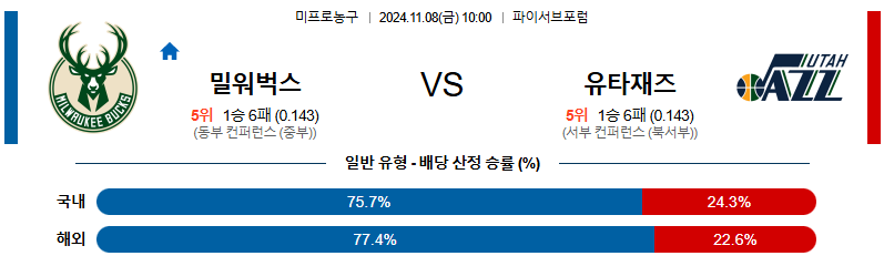 [킹콩티비]11월 08일 밀워키 벅스 vs 유타 재즈 NBA 해외축구분석 무료중계 스포츠분석