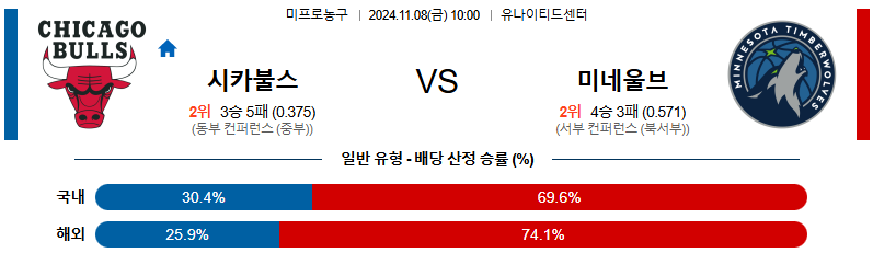 [킹콩티비]11월 08일 시카고 불스 vs 미네소타 팀버울브스 NBA 해외축구분석 무료중계 스포츠분석