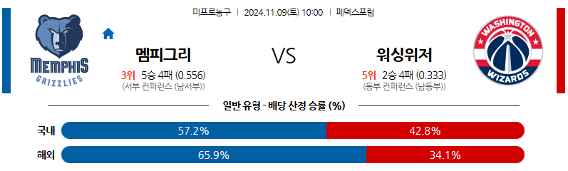 [킹콩티비]11월 09일 멤피스 vs 워싱턴 NBA 해외축구분석 무료중계 스포츠분석