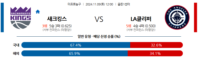 [킹콩티비]11월 09일 새크라멘토 vs LA 클리퍼스 NBA 해외축구분석 무료중계 스포츠분석