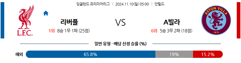 [킹콩티비]11월 10일 리버풀 vs 아스톤 빌라 리그1 해외축구분석 무료중계 스포츠분석