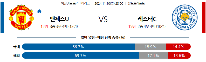 [킹콩티비]11월 10일 맨체스터 유나이티드 vs 레스터 시티 EPL 해외축구분석 무료중계 스포츠분석
