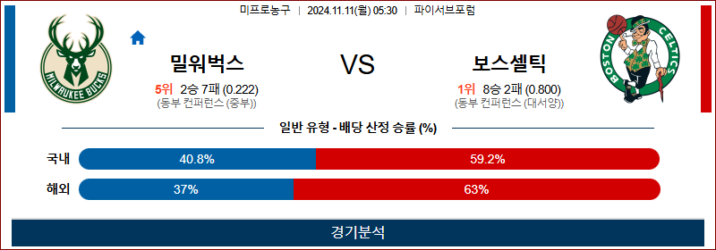 [킹콩티비]11월 11일 밀워키 vs 보스턴 NBA 해외축구분석 무료중계 스포츠분석