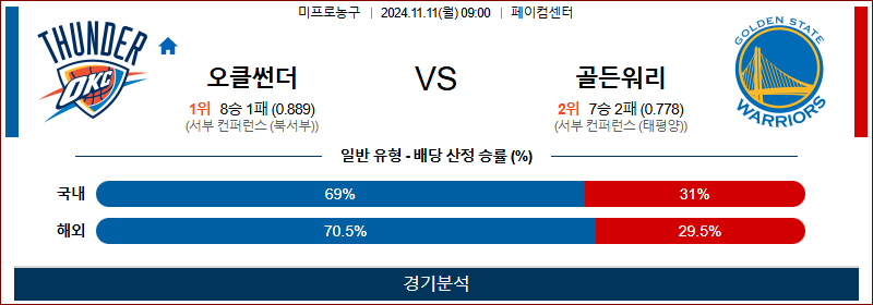 [킹콩티비]11월 11일 오클라호마 vs 골든스테이트 NBA 해외축구분석 무료중계 스포츠분석