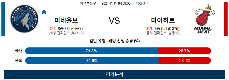 [킹콩티비]11월 11일 미네소타 vs 마이애미 NBA 해외축구분석 무료중계 스포츠분석