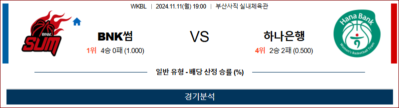 [킹콩티비]11월 11일 BNK썸 vs 하나은행 WKBL 해외축구분석 무료중계 스포츠분석