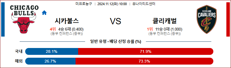 [킹콩티비]11월 12일 시카고 불스 vs 클리블랜드 캐벌리어스 NBA 해외축구분석 무료중계 스포츠분석