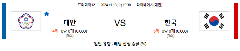 [킹콩티비]11월 13일 대만 vs 한국 프리미어12 해외축구분석 무료중계 스포츠분석
