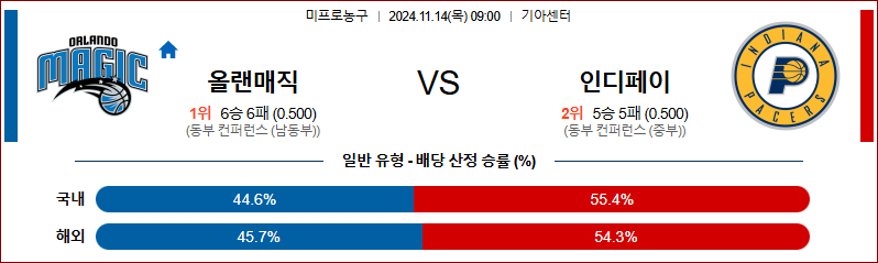 [킹콩티비]11월 14일 올랜도 매직 vs 인디애나 페이서스 NBA 해외축구분석 무료중계 스포츠분석