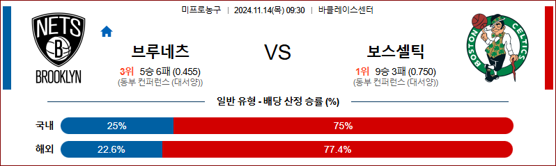 브루클린 네츠 보스턴 셀틱스 11월14일