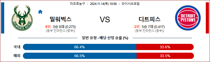 [킹콩티비]11월 14일 밀워키 벅스 vs 디트로이트 피스톤스 NBA 해외축구분석 무료중계 스포츠분석