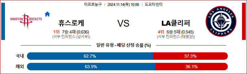 [킹콩티비]11월 14일 휴스턴 로켓츠 vs LA 클리퍼스 NBA 해외축구분석 무료중계 스포츠분석