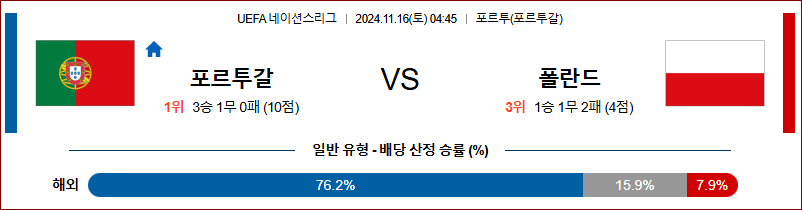 [킹콩티비]11월 16일 포르투갈 vs 폴란드 UEFA 네이션스리그 해외축구분석 무료중계 스포츠분석