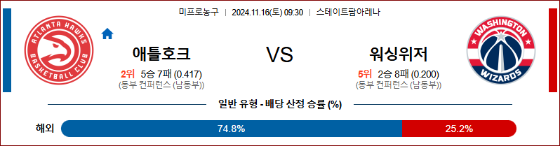 애틀란타 호크스 워싱턴 위저즈 11월16일