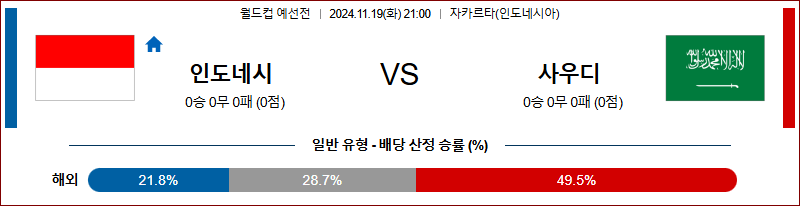[킹콩티비]11월19일 인도네시아 vs 사우디아라비아 월드컵 예선전 해외축구분석 무료중계 스포츠분석