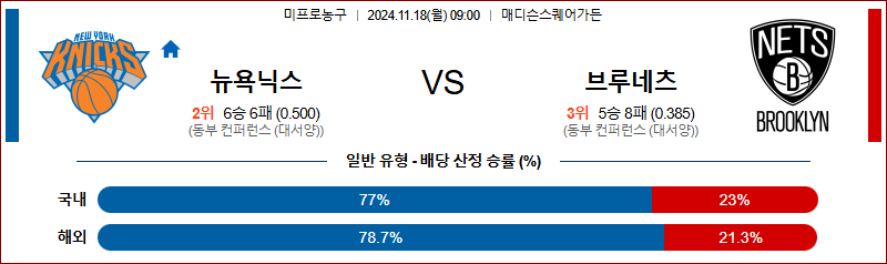 [킹콩티비]11월 18일 뉴욕닉스 vs 브루클린 네츠 NBA 해외축구분석 무료중계 스포츠분석