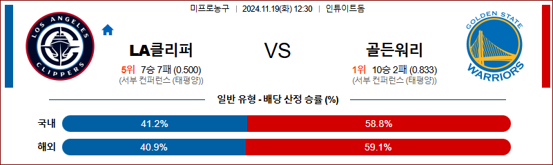 [킹콩티비]11월 19일 LA 클리퍼스 vs 골든스테이트 워리어스 NBA 해외축구분석 무료중계 스포츠분석