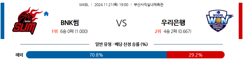 [킹콩티비]11월 21일 BNK썸 vs 우리은행 WKBL 해외축구분석 무료중계 스포츠분석
