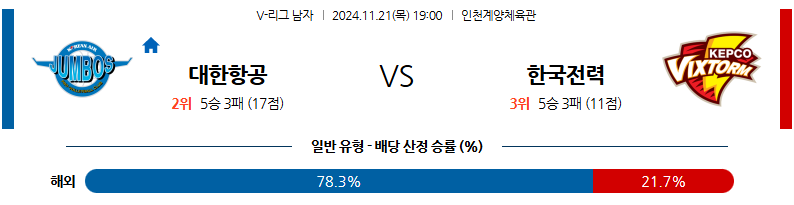 [킹콩티비]11월 21일 대한항공 vs 한국전력 V-리그 해외축구분석 무료중계 스포츠분석