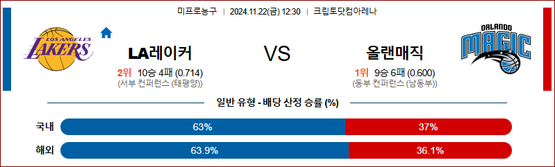 [킹콩티비]11월 22일 LA레이커스 vs 올랜도 매직 NBA 해외축구분석 무료중계 스포츠분석