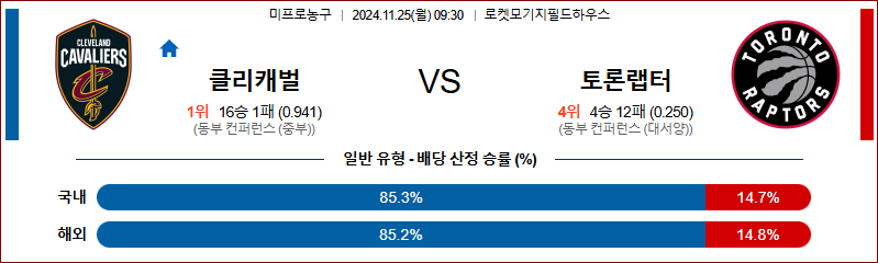[킹콩티비]11월 25일 클리블랜드 캐벌리어스 vs 토론토 랩터스 NBA 해외축구분석 무료중계 스포츠분석