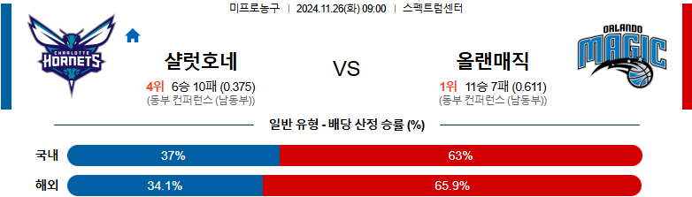 [킹콩티비]11월 26일 샬럿 호네츠 vs 올랜도 매직 NBA 해외축구분석 무료중계 스포츠분석