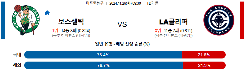 [킹콩티비]11월 26일 보스턴 셀틱스 vs LA클리퍼스 NBA 해외축구분석 무료중계 스포츠분석